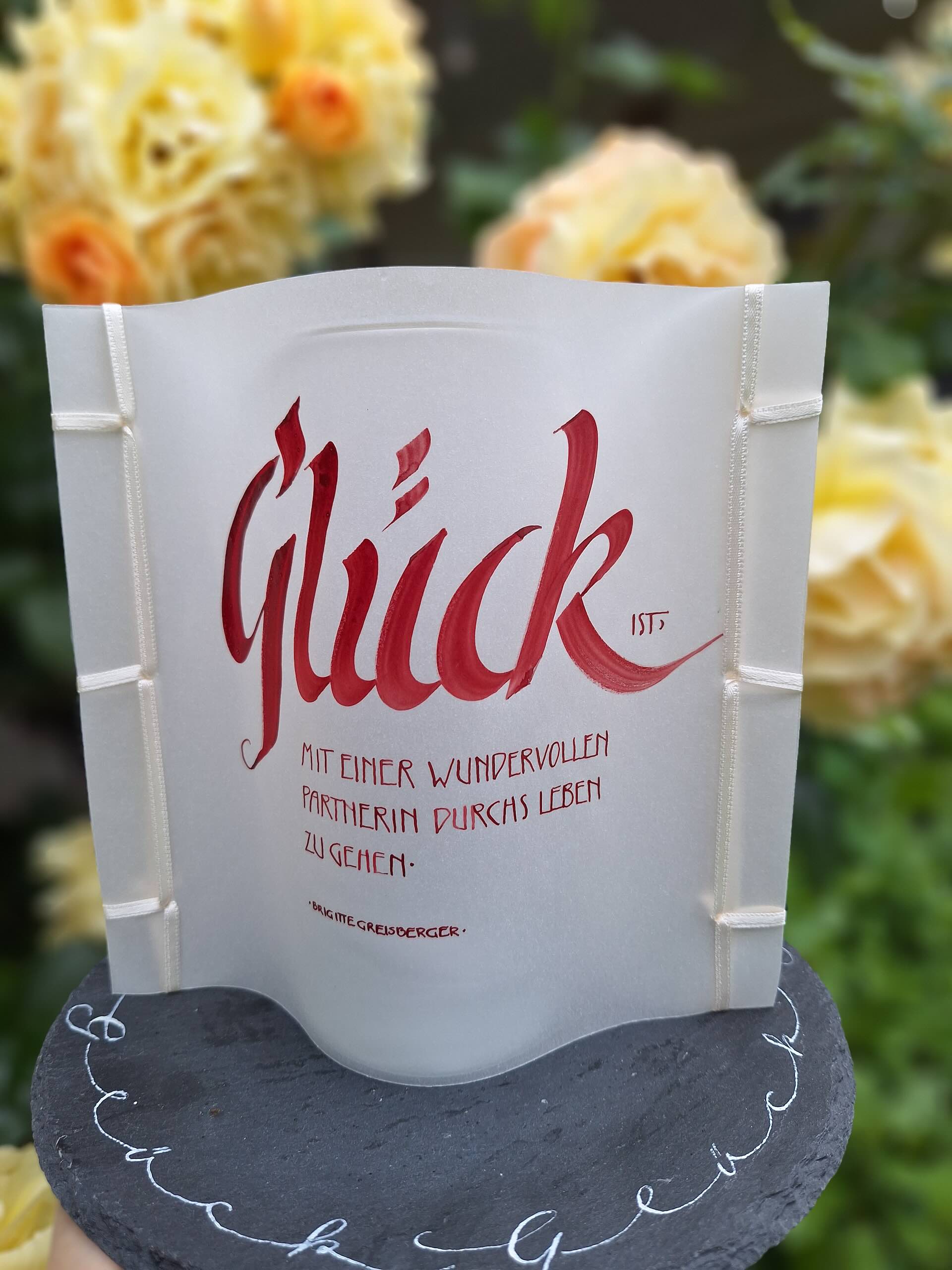 Meine Freundin musste in vergangener Zeit viele Schicksalsschläge ertragen. Über das personalisierte Windlicht, mit dem für sie abgestimmten Text, hat sie sich so sehr gefreut, dass sie sich später noch einmal dafür bedankt hat und mir mitteilte, welch große Freude sie damit hat. Es bringt Licht, Trost und Wärme in ihren Alltag. Sie entzündet es täglich.